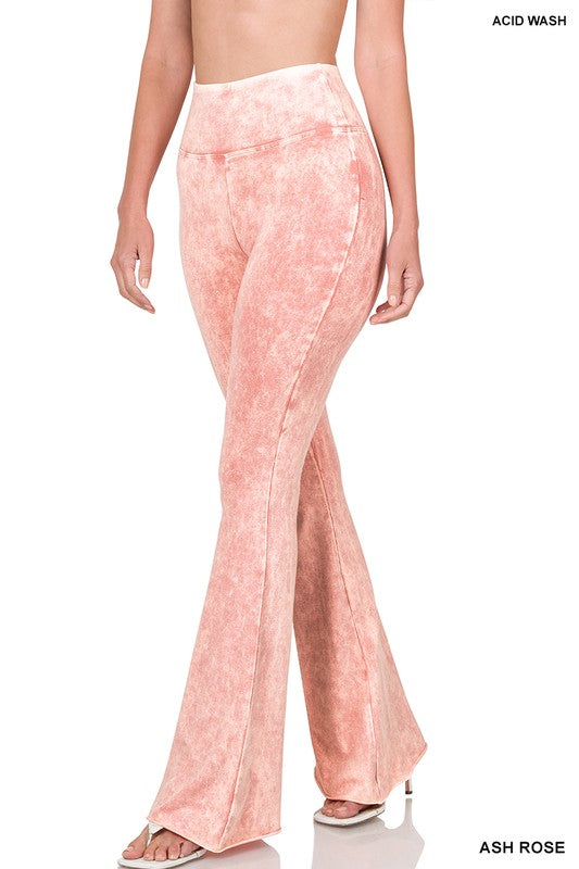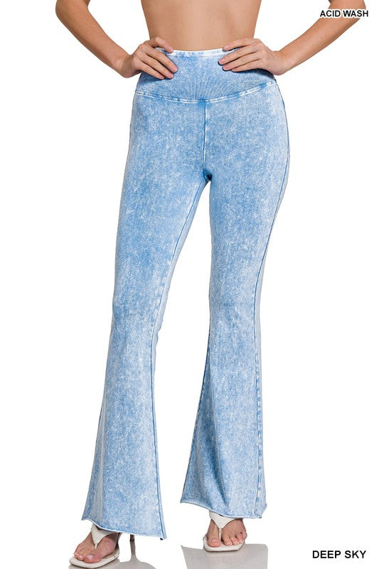 ACID WASH HIGH WAIST RAW EDGE HEM PANTS