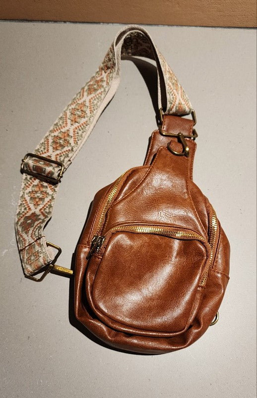 NEW SUMMER VEGAN LEATHER AZTEC GUITAR STRAP BAG