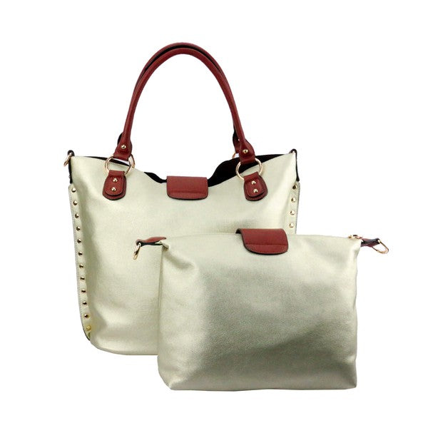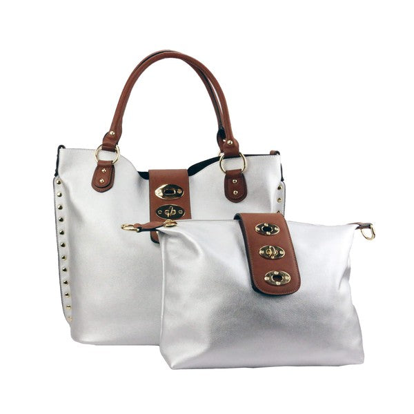 Inner pouch (not attached) has same flap/twist lock closure detail but with extra zipper closure for more security