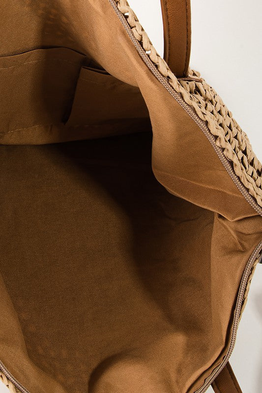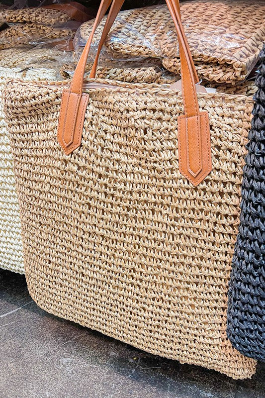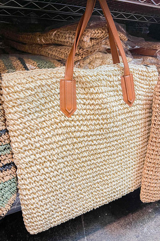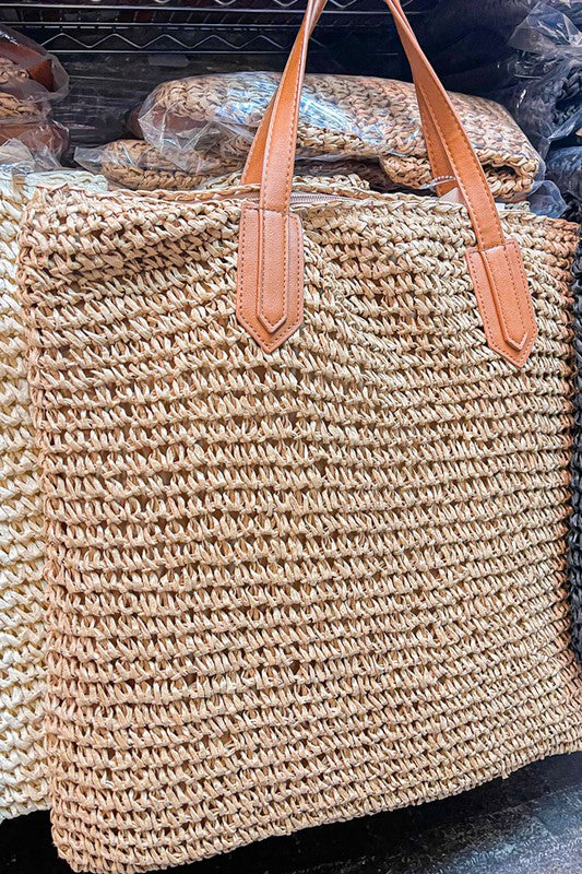 SUMMER BEACH BAG OUT SQUARE STRAW BRAIDED TOTE BAG
